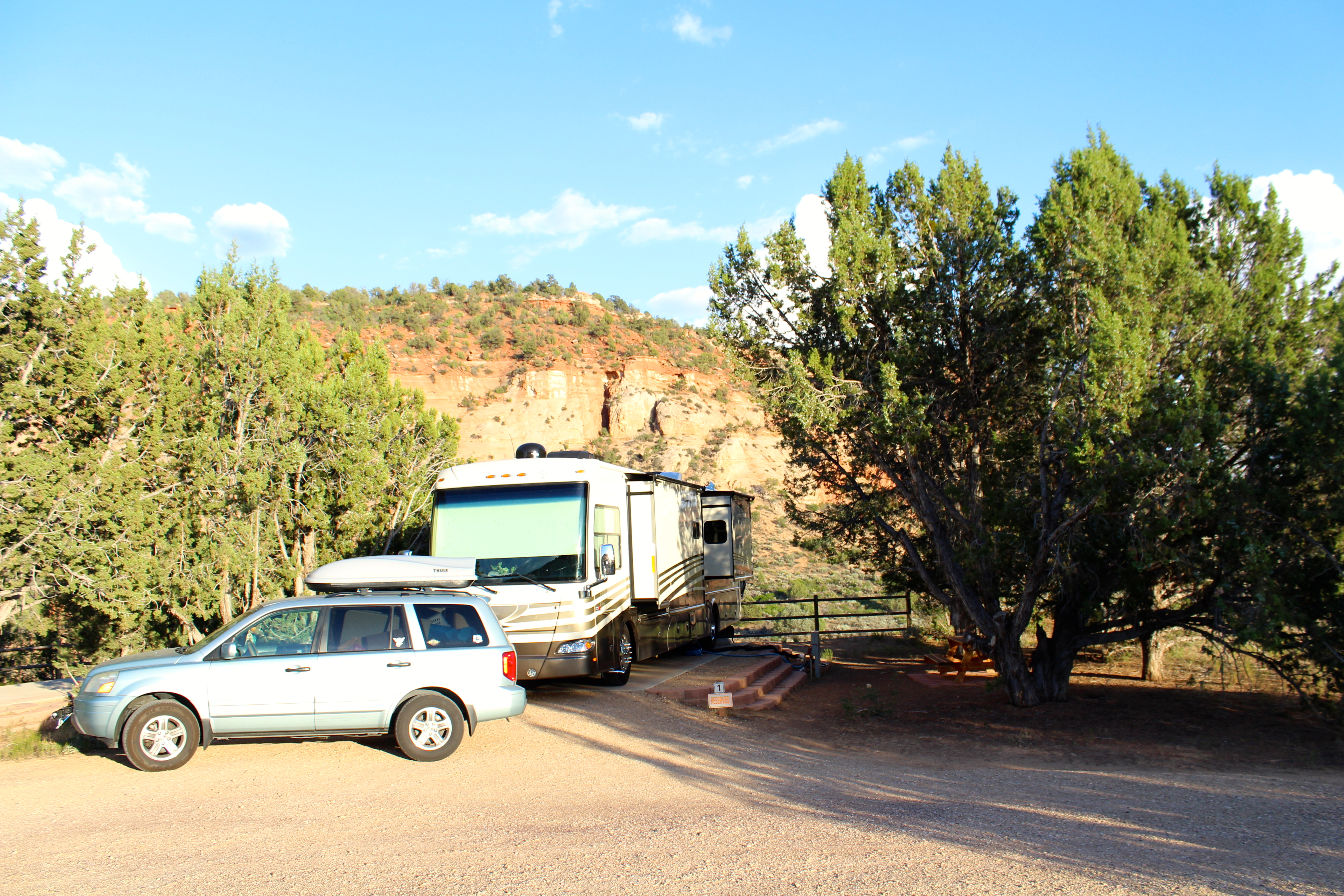 They provide two secluded spots for RVs with full hookups overlooking Angel Canyon, complete with cement slabs and picnic tables. There were lots of hummingbirds that we fed from a hook off the RV to keep our cats entertained while we were gone during the day.
