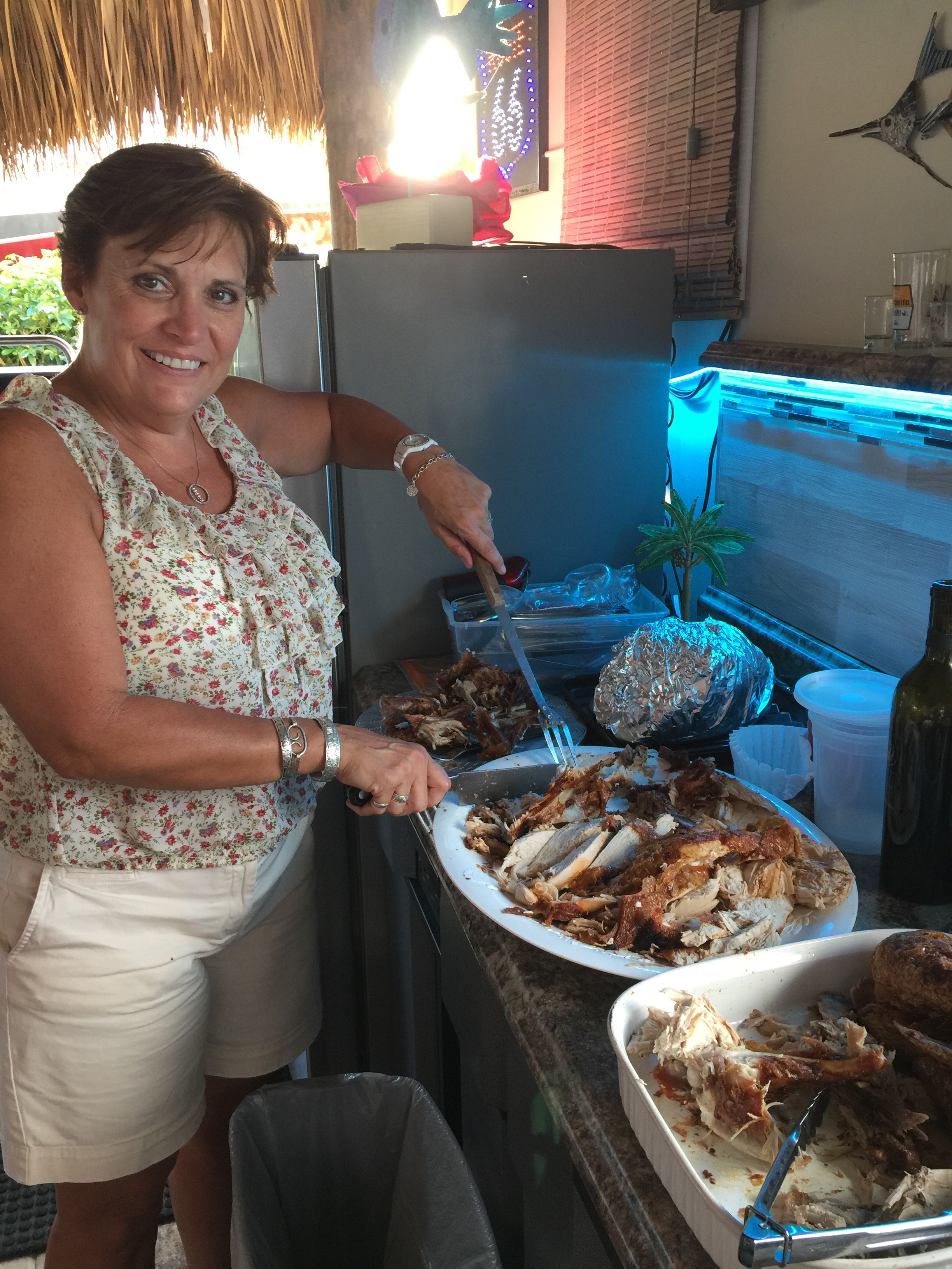 Sallie cutting one of two birds