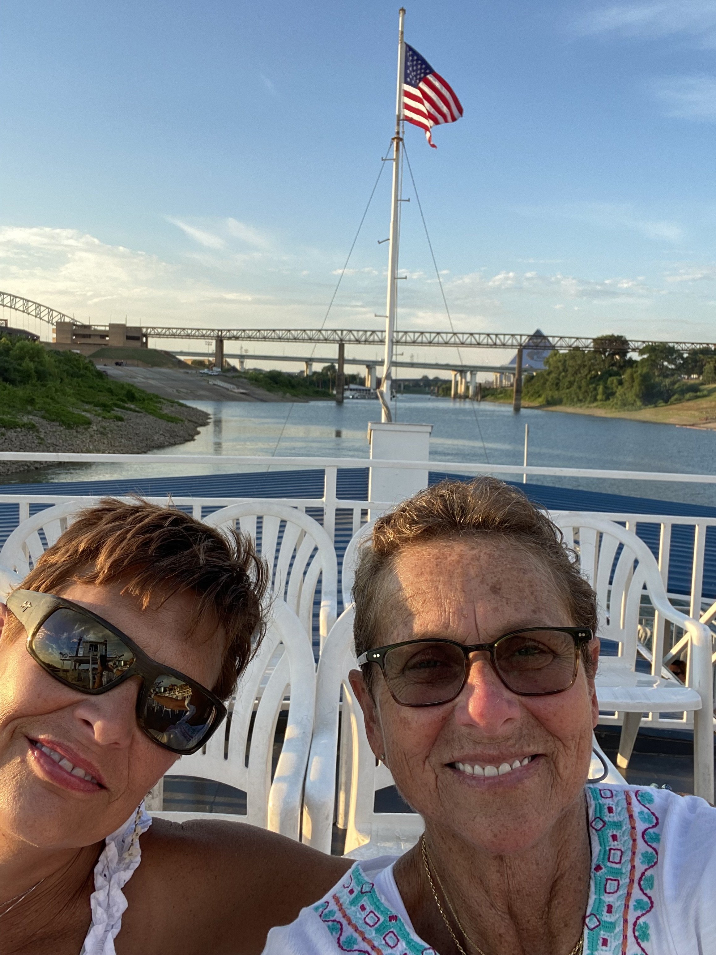 Since weather is out of our control, mother nature can cause plans to change. What appeared to be a tropical storm heading straight to our next destination, Heritage Motorcoach Resort on the panhandle in Orange Beach Alabama, we decided to stay out of the storms path. So we decided to go back to Memphis, Tennessee and revisit places we’ve been and explore new adventures. We found a campground called Tom Sawyers and parked on a site with an amazing view of the Mississippi River. When we entered the park we saw the sign that called it a “diluvial jungle”  which means “relating to a flood, especially the biblical flood”.  That made us a little leery as to what we were getting ourselves into and then we saw the building where the 2011 flood level got and we understood. Luckily we were in Tennessee during a dry season and had nothing to worry about, but seeing how high the river can get and cause such devastation was a little humbling. We saw many barges going up and down the river everyday. In the spring when all the snow melts up north, this is one of the many places that flood.