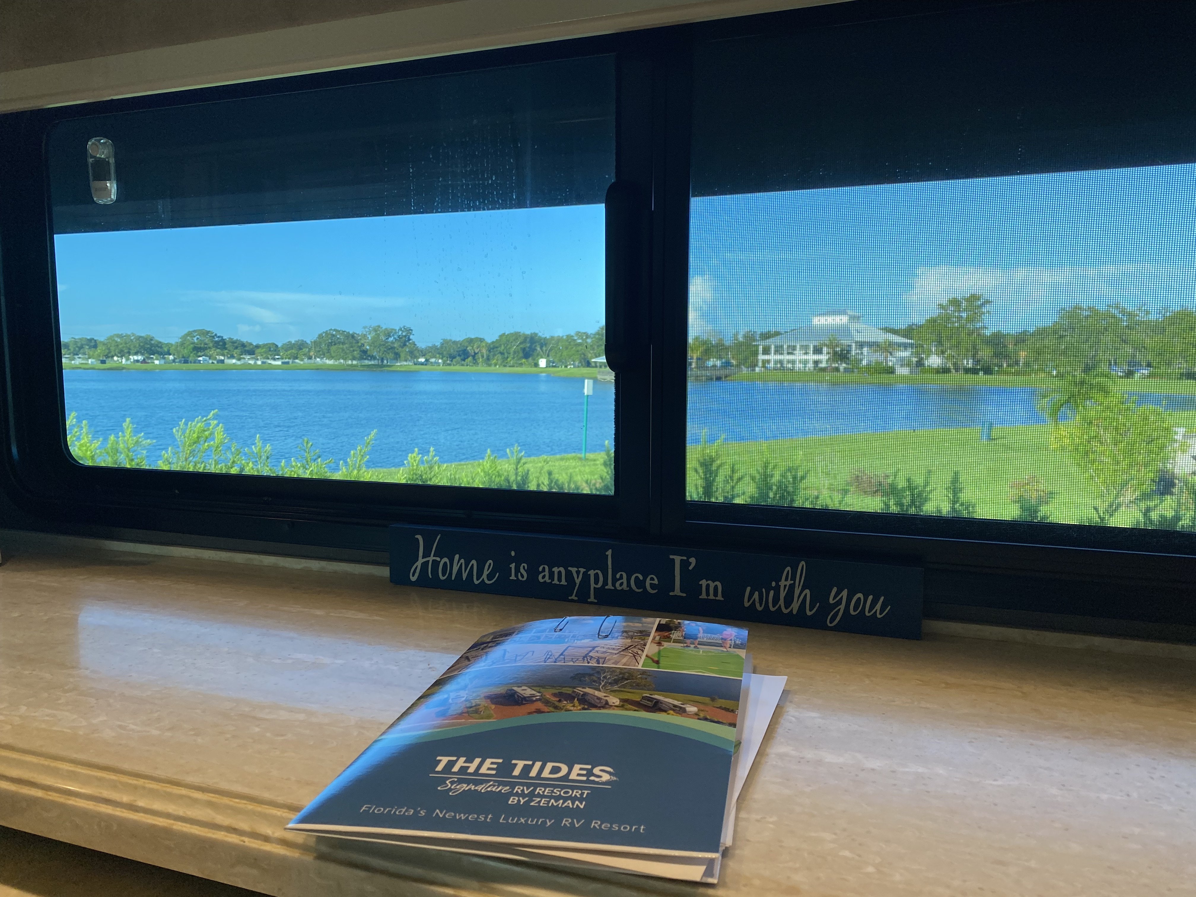 When the weather settled back on the gulf coast we went to Carrabelle, Fl.  The only thing to do there was the beach, which was no problem for us! We continued our journey to Palmetto, FL (the Tampa/St. Pete area). We really loved it there. The Tides RV Resort is a new Luxury RV park, though quite a ways from city shopping. The grounds were beautiful and the pools, clubhouse and staff were exceptional. They even had a baked potato bar for dinner one night with an RV specialist as a guest speaker that we were invited to attend.