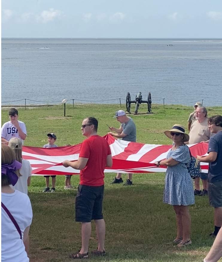 Sallie helped raise the American Flag